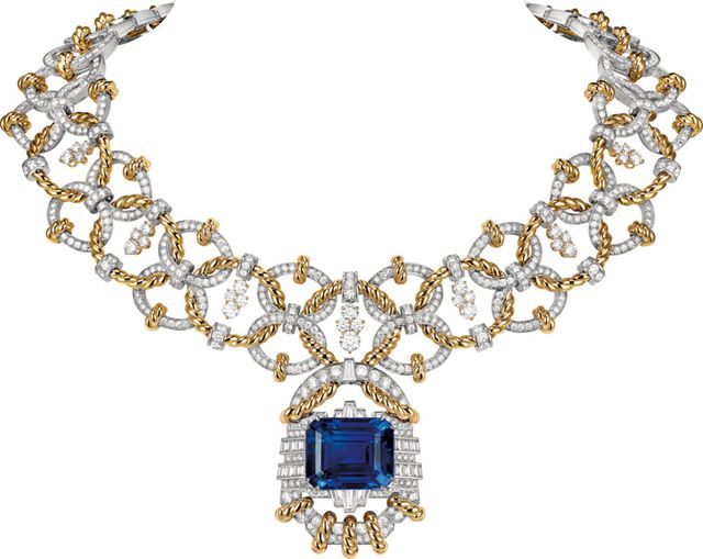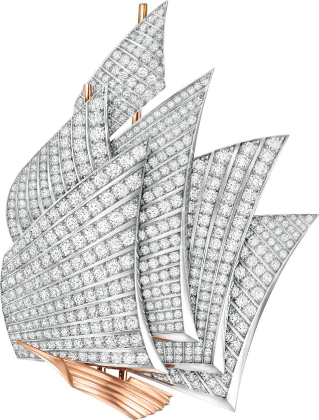 트레저 아일랜드 하이 주얼리 컬렉션은 세 가지 챕터로 구성되어 있다. 수 세기 동안 메종에 중요한 영감의 원천이던 바다에 헌정하는 의미를 담은 첫 번째 챕터 ‘바다에서 펼쳐지는 모험’은 컬렉션의 본질에 가장 가깝다. 메종은 스티븐슨의 소설에서 가장 흥미로운 캐릭터인 해적을 표현하기 위해 실제 스토리 속 인물의 이름을 딴 작은 피규어 클립들을 탄생시켰다. 첫 번째 챕터에는 히스파뇰라 클립도 포함되는데, 히스파뇰라는 보물을 찾기 위해 선원들이 타는 배의 이름이다. 이 히스파뇰라 클립은 스톤 세팅과 스톤 사이징(stone sizing) 즉, 메종 특유의 사이즈 조정 기술의 놀라운 성취를 보여주며 돛 사이로 바람이 흐르는 듯한 입체감을 구현했다. 이미 바다의 아름다움을 다룬 애틀랜틱 컬렉션을 선보인 바 있는 반클리프 아펠은 트레저 아일랜드 컬렉션의 첫 번째 챕터를 통해 다시금 해양에 매료 되었다. 나아가 환상적인 사파이어를 사용한 앙 오뜨 메르 네크리스도 눈여겨볼 제품이다. 여기엔 배의 닻줄이나 밧줄을 골드로 정교하게 엮어 세밀하게 작업한 부분이 있는데, 이는 메종의 1950년대 아카이브에서 영감을 얻은 디자인이다. 당시 메종의 아카이브에는 이렇게 골드를 꼬아 엮거나 독특한 금세공이 돋보이는 드로잉이 많이 포함되어 있었으며, 이를 현대적 감각으로 재해석해 이번 컬렉션에 담았다.
