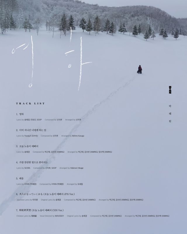 이번 앨범은 타이틀곡 ‘영하’를 비롯한 신곡들과 기존에 사랑받았던 곡들까지 총 7개의 트랙으로 구성됐다. HYNN(박혜원)의 독보적인 발라드 감성을 집약적으로 담아낸 앨범이다.