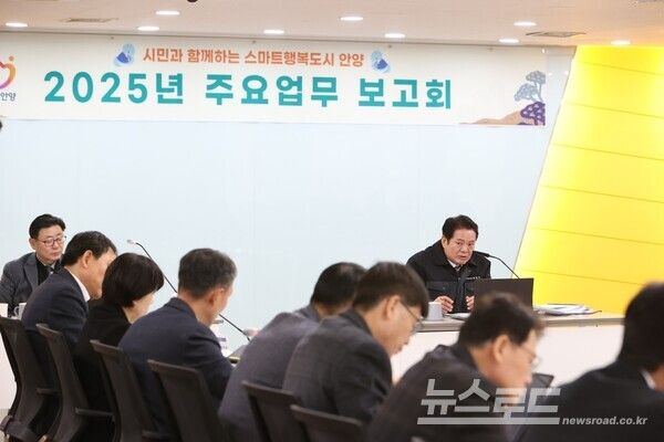 [뉴스로드] 안양시가 시청 상황실에서 전 부서와 공공기관 및 협력기관 대상으로 ‘2025년 주요업무 보고회’를 개최했다.