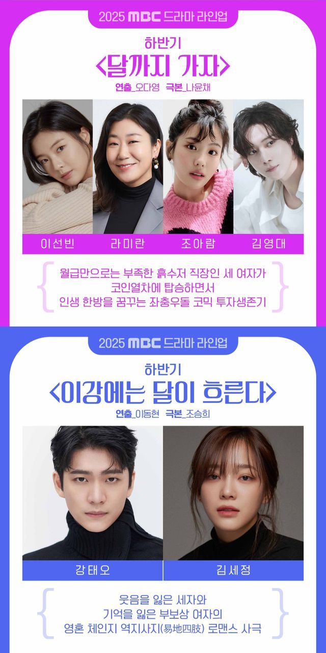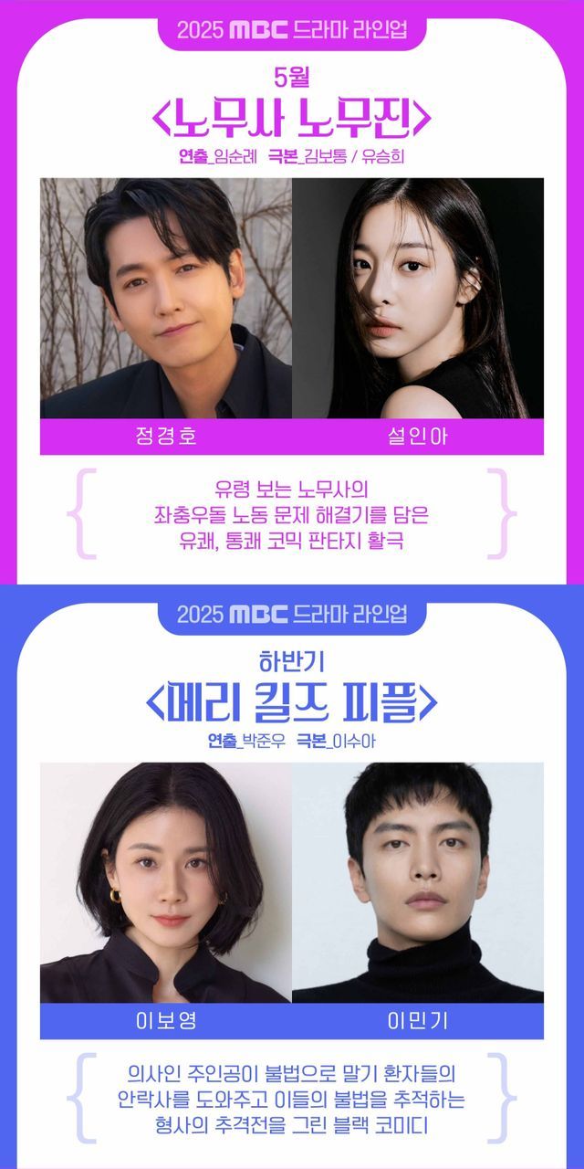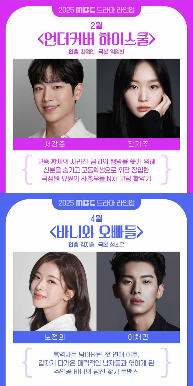 MBC 관계자는 “그 어느 때보다 MBC 드라마에 대한 시청자의 기대감이 높아진 가운데 2025년에는 코믹, 청춘멜로, 판타지, 첩보물, 메디컬은 물론, 사극까지 더욱 다양한 장르에 걸쳐 이름 석자만으로도 확신을 주는 명품 배우들이 진심을 다해 명연기를 펼칠 예정이다. 2025년 MBC 드라마에 많은 기대와 응원 부탁한다”고 당부했다.