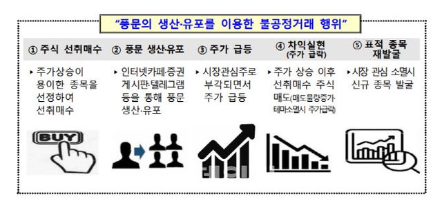 정치테마주로 부각시키기 위해 전업투자자 A씨가 인터넷 카페나 증권게시판, 텔레그램 등을 통해 꾸준하게 유포한 풍문들이다. 주가 상승이 쉬운 종목을 선정해 선취매수 한 이후 지속적으로 정치테마주로 부각시키는 글을 게재하고 주가가 급등하면 매도하는 등의 시장 교란행위가 금융당국에 적발됐다.