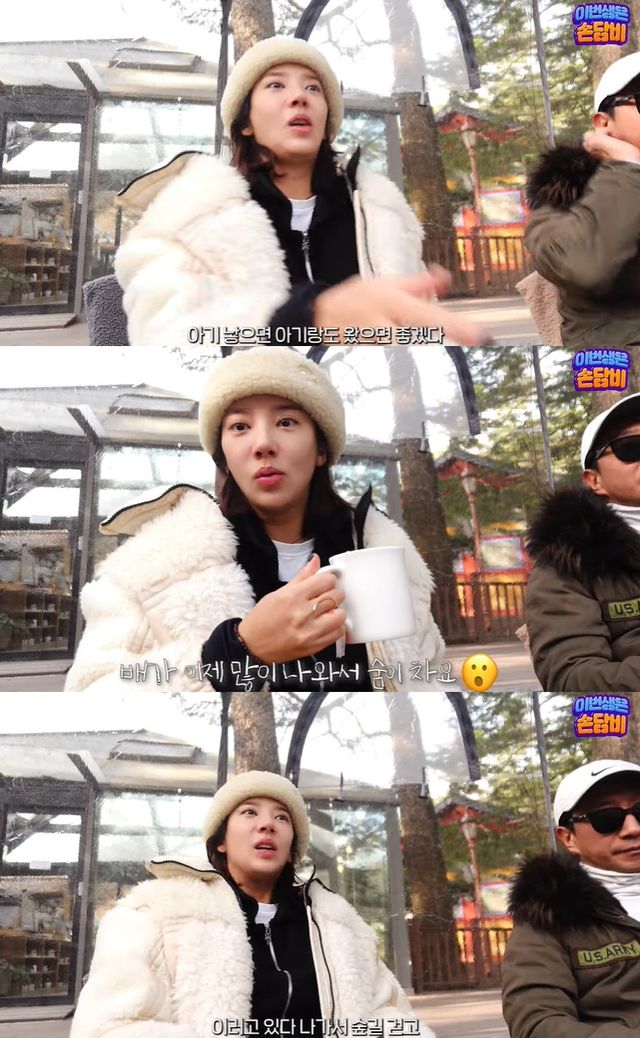 이규혁과 함께 힐링을 즐기던 손담비는 아이를 낳은 뒤 아이와 함께 다시 오면 좋을 것 같다는 감상을 밝히기도. 이어 그는 "배가 이제 많이 나와서 숨이 찬다. 신기하다"고 전했다.