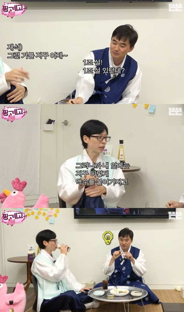 김석훈이 "유재석 재산 1조설이 있더라"고 언급하자 유재석은 "몇몇 분이 그러시다가 이게 기사 클릭이 되니까 다른 분들도 그럴 수밖에 없는, 맞는 표현인지 모르겠지만 악화가 양화를 구축하는 느낌"이라고 털어놨다.