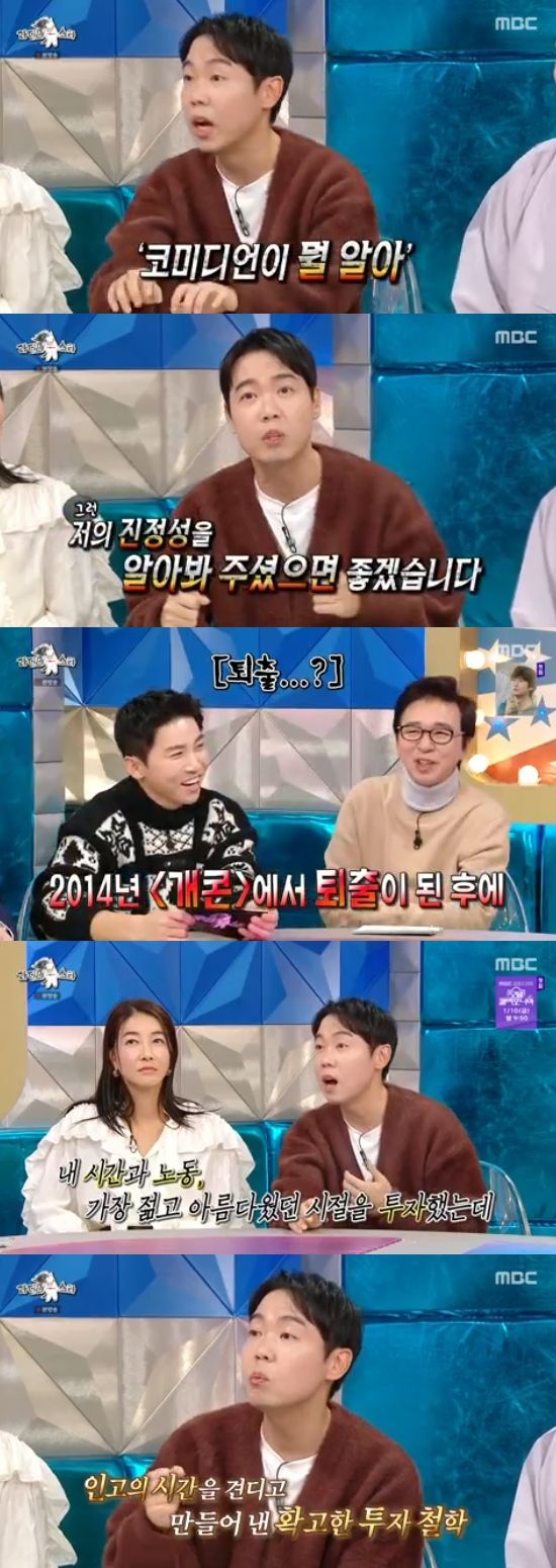 그러면서 "제가 경제 이야기를 하면 댓글에 '개그맨이 뭘 알아. 뭘 안다고 떠들어'라는 말이 많았다. 저는 제 역할이 있다. 경제에 쉽게 접근할 수 있도록 도와주겠다는 사명감이 있다. 진정성을 알아봐주셨으면 좋겠다"고 말해 눈길을 끌었다.