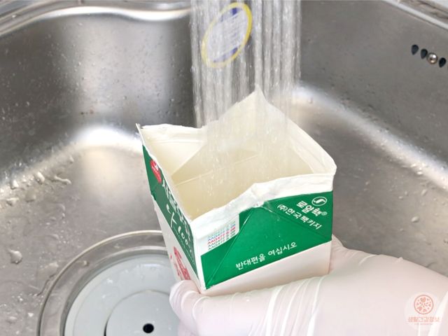 빈 우유팩에 물을 가득 채우고