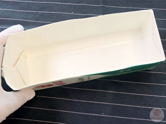 우유팩 한쪽면을 잘라내고 입구를 오므리면