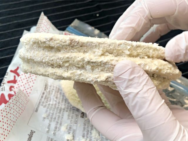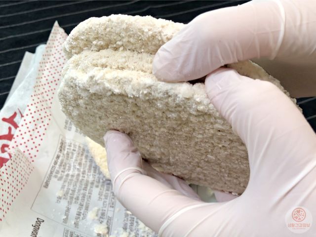 본드로 붙여 놓은 것처럼 떨어지지 않는 냉동돈까스.