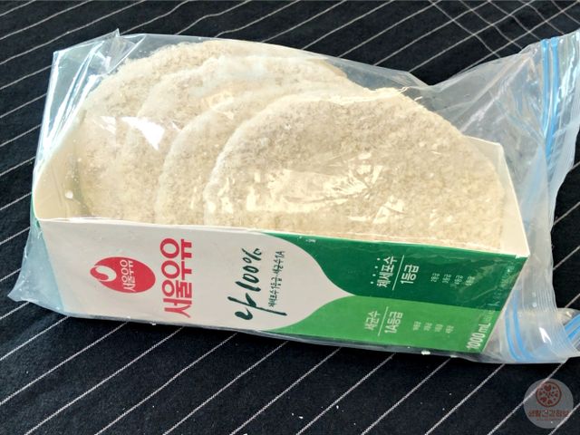 우유팩에 냉동식품을 넣고