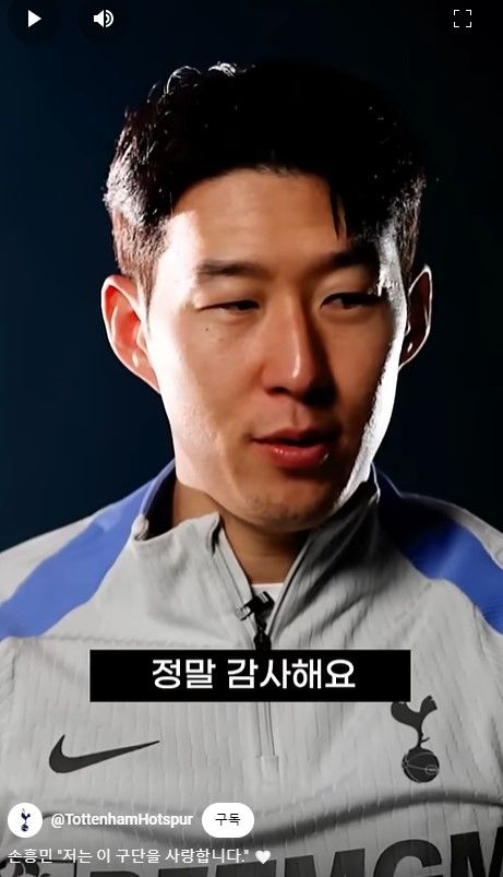 토트넘은 8일 구단 공식 사이트를 통해 손흥민이 토트넘과 다음 시즌도 함께하게 된 소감의 인터뷰 영상을 1분 분량으로 각각 2개 영상을 공개했다.