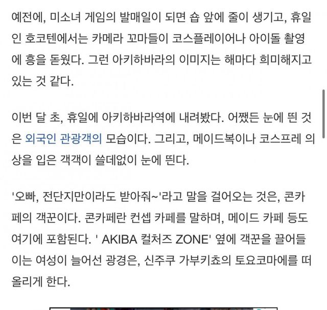 지금은 다르다 현재 10~20대는 아키하바라가 왜 씹덕성지인지 모르고