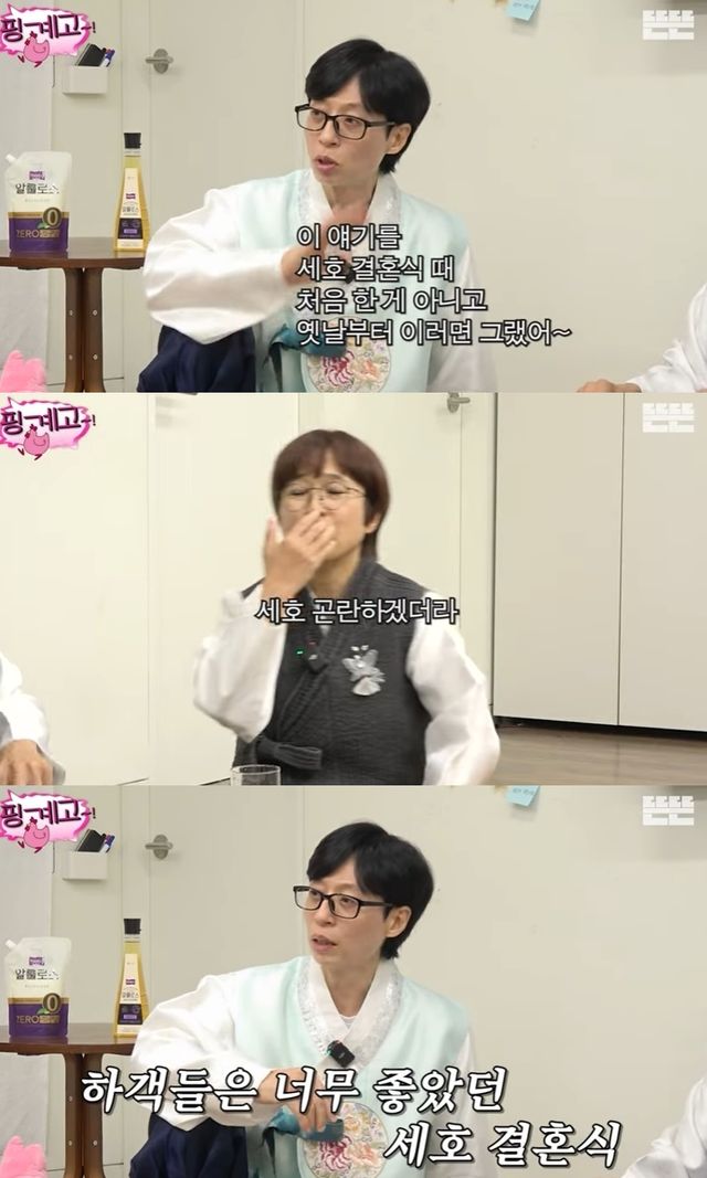 유재석은 "(하객들은) 아무렇지 않았다. 우리끼리 충분히 할 수 있는 얘기고, 세호 결혼식 때 처음 한 게 아니고 옛날에도 그랬다"고 조세호 대신 해명했다.