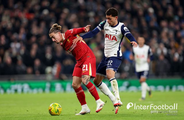 토트넘 훗스퍼는 9일 오전 5시(한국시간) 영국 런던에 위치한 토트넘 훗스퍼 스타디움에서 열린 2024-25시즌 잉글랜드 풋볼리그컵(EFL컵) 4강 1차전에서 리버풀과 경기를 치르고 있다. 현재 0-0으로 후반전이 진행 중이다.