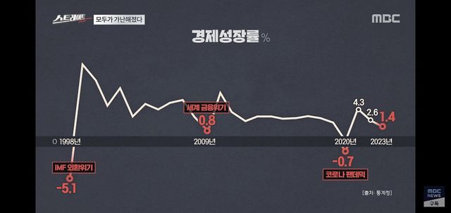 한국의 경제성장률이 2% 아래로 떨어진 건 1990년대 이후 딱 3번.