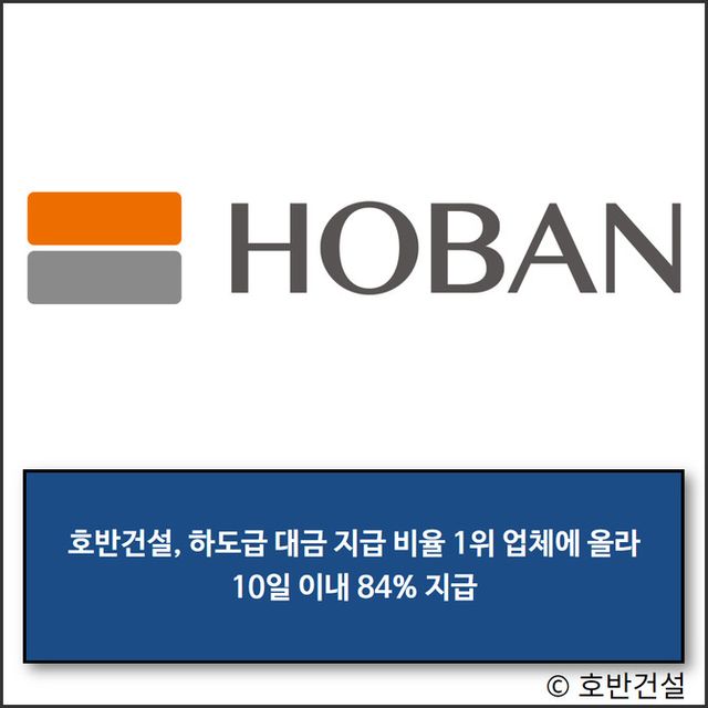 호반건설은 지난 5일 공정거래위원회가 공개한 '2024 상반기 하도급 대금 결제조건 공시 점검 결과'에서 하도급 대금 결제조건을 공시한 88개 기업집단 소속 1396개 사업자 가운데 '10일 이내 지급 비율'에서 가장 높은 84.62%를 기록했다.