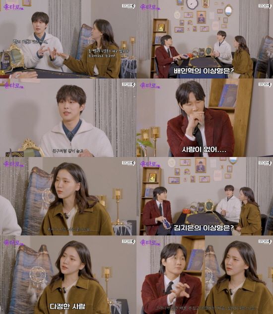 배인혁이 질문과 함께 뽑은 타로카드에 이용진은 “사랑이 없다”며 “일 밖에 안 나온다. 일을 하다보면 연애하고 싶은 마음이 들지 않을 것 같다. 서른 중반까지는 일 뿐”고 해석했다.