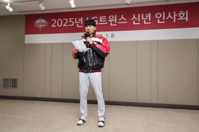 그는 "팀을 잘 이끌어 달라는 의미로 저를 주장으로 뽑아주셨지만, 오늘 이 자리에 참석한 모든 LG 트윈스 구성원이 팀을 이끈다는 마음이 없다면 우리가 원하는 정상에 서기까지 힘이 조금 부족할 것"이라면서 "제가 주장으로서 가장 앞에서 팀을 이끌겠지만 여기 있는 모든 분이 함께 LG 트윈스를 이끈다는 마음을 가져주셨으면 한다"고 당부했다. 이어 "그 마음이 모여 2025시즌 우승 성과로 잠실 야구장에 모두 모여 축하의 샴페인 파티를 했으면 좋겠다"고 말했다.
