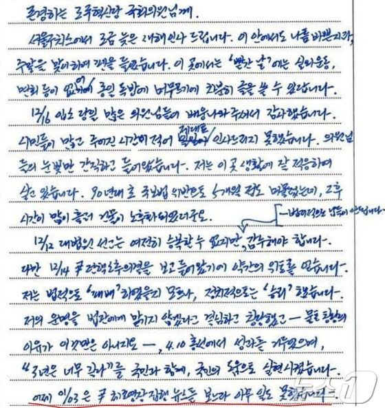 조국 전 조국혁신당 대표의 옥중서신. / 뉴스1