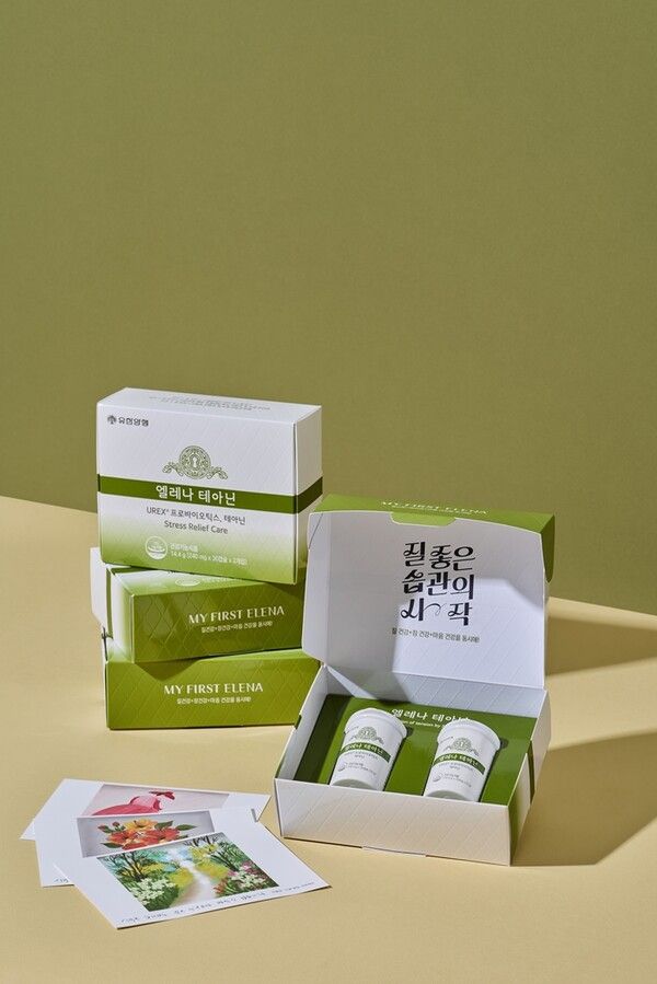 유한양행이 프리미엄 여성 유산균 '엘레나 테아닌'을 출시했다. 이번에 라인업을 확장하면서 엘레나 제품군은 엘레나, 엘레나 퀸, 엘레나 스틱, 엘레나 테아닌 등 총 4종으로 구성하게 됐다. '엘레나 테아닌'은 여성의 질과 장 내 환경 개선에 도움을 주는 UREX® 프로바이오틱스에 스트레스 완화와 심리적 안정 효과를 주는 테아닌 성분을 더해 현대 여성들이 겪는 다양한 스트레스를 완화하고 심리적 안정을 돕는데 중점을 뒀다. 이번 출시를 기념해 93세 아이패드 드로잉 아티스트 여유재순 작가와의 특별한 콜라보레이션도 진행된다. 패키지에 여유재순 작가의 3가지 버전의 한정판 작품 엽서를 랜덤으로 제공해 스트레스로 지친 일상 속에 작은 힐링과 감동을 선사할 계획이다.