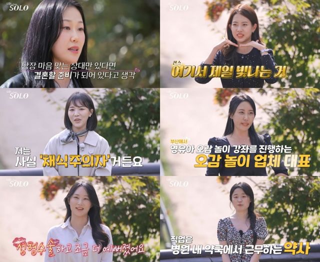 1992년생으로, 서울 중앙부처에서 행정직 공무원으로 근무 중인 순자는 인테리어, 마라톤, 클라이밍 등 다양한 경험을 좋아하는 삶의 방식을 즐긴다고 소개했다. 이어 순자는 ‘채식주의자’임을 고백했고 “편견 없이, 거부감 없이 (채식주의자를) 받아들여 줄 수 있는 분이면 좋겠다. 그렇다고 해서 절대 채식을 남에게 강요하지는 않는다”라고 덧붙였다. 영자는 1990년생으로, 영유아 강좌를 진행하는 오감놀이 업체 대표라는 반전 직업을 공개했다. 이어 “프리랜서라 남자친구 스케줄에 맞출 수 있다. 한식, 중식 조리사 자격증이 있다. 옛날에 태어났으면 1등 신붓감!”이라고 당당하게 셀프 어필했다.