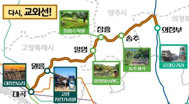 1961년 개통한 교외선은 고양, 양주, 의정부를 이동할 수 있는 경기 북부 대표 교통수단으로, 서울 도심지에서 송추계곡, 장흥수목원 등 주요 인근 관광지를 연결하는 핵심적인 동서 철도 교통이었다.