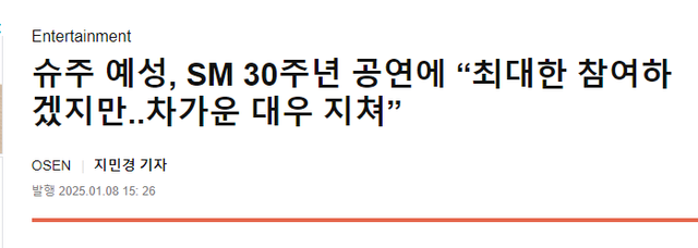 그는 “SM타운 질문도 간혹 보이는데 우선 20년 넘게 있던 회사의 행사다 보니 최대한 참여는 하겠지만 앨범의 음악에는 거의 참여를 하지 못했다”고 밝혔다.