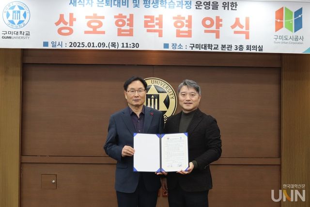[한국대학신문 이정환 기자] 구미대학교(총장 이승환)와 구미도시공사(사장 이재웅)가 공사 재직자의 은퇴 대비를 위해 서로 손을 맞잡았다.