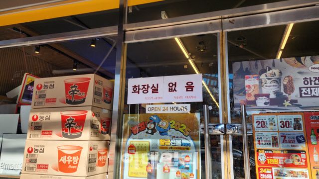 화장실을 거부하면 가게 근처 담벼락에서 노상방뇨를 하는 경우도 잦았다. 한남동 루터교회 인근에서 편의점을 운영하는 50대 정모씨는 “별도로 화장실이 없는데도 매일같이 사람들이 찾아와 물어보고 하니까 화장실 없다고 문에 붙여놓기도 했다”며 “어떤 사람들은 그냥 화장실 안 보이니까 짜증도 내고 옆에 가서 노상방뇨도 막 하더라”면서 한숨을 내쉬었다. 정씨는 집회가 시작된 이후 편의점 입구에 ‘화장실 없음’이라고 크게 종이에 출력해 붙여뒀다.