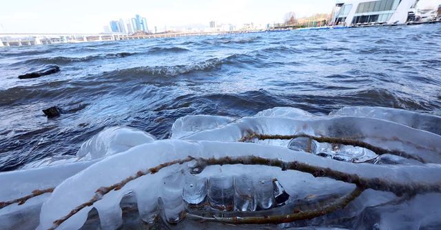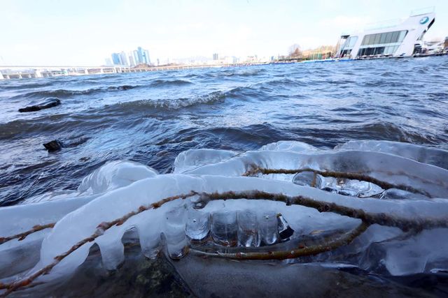 올 겨울 최강 한파를 보여준 9일 서울 여의도 한강변에서 고드름이 열려 있다. / 뉴스1
