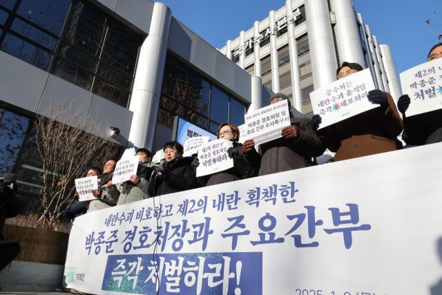 전국민주노동조합총연맹, 참여연대 등 1700여 개 단체가 모인 '윤석열 즉각 퇴진·사회대개혁 비상행동'은 9일 서울 서대문 국가수사본부 앞에서 기자회견을 열고 "범죄사실이 명백함에도 출석을 계속 거부하는 박종준 경호처장 등은 윤석열과 마찬가지로 체포대상이다. 국수본은 즉각 경호처 주요 간부를 체포하고 수사하라"고 촉구했다.