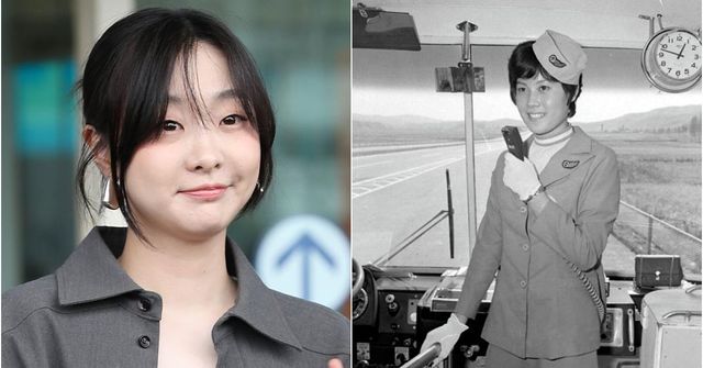 (왼쪽)배우 김다미. (오른쪽)행정자치부 국가기록원이 공개한 '1973년 고속버스 안내양'. 자료사진. / 뉴스1, 국가기록원 제공-뉴스1