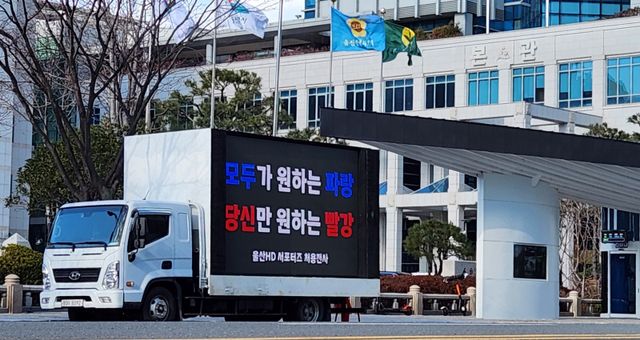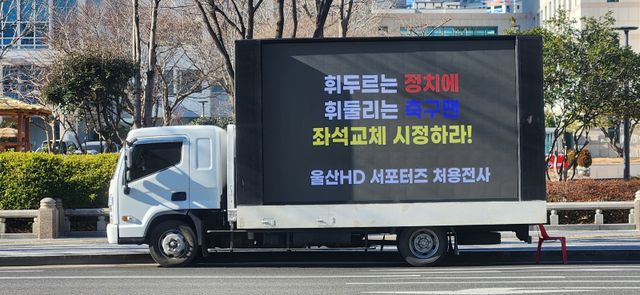 결국 울산 팬들도 단체행동에 나서기 시작했다. 울선 서포터스 처용전사 이름으로 9일부터 울산시청 앞에서 트럭시위를 시작했다. 트럭에는 ‘울산 HD는 단 한 번도 붉은 적이 없다’, ‘휘둘리는 정치에 휘둘리는 축구팬, 좌석교체 시정하라’, ‘지난 7월 시민 5000명 반대 목소리에 돌아온 대답은 무성의한 회피답변’ 등 비판 목소리가 담겼다.