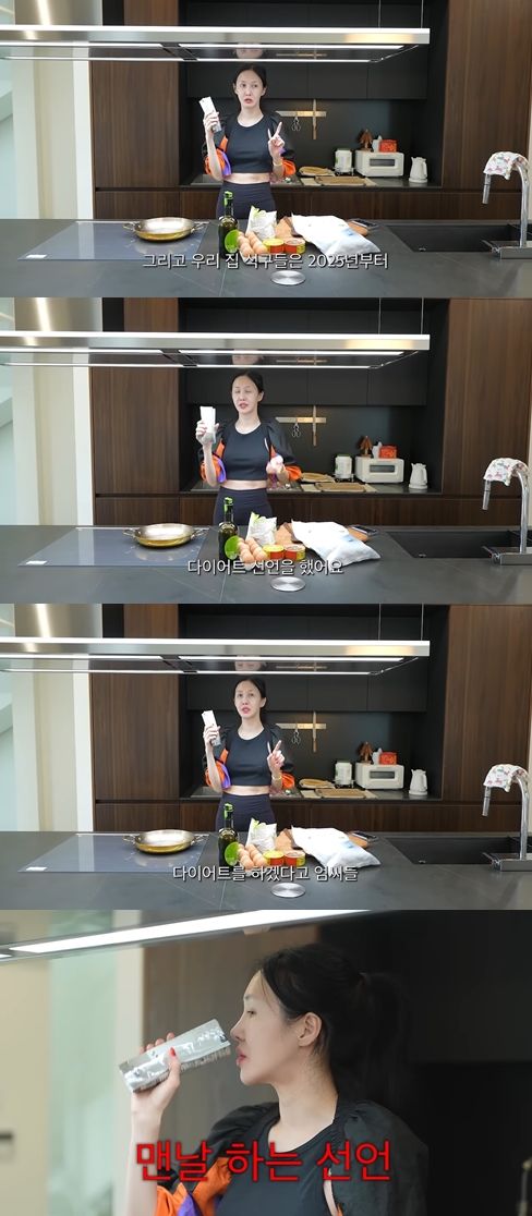 이어 "저 말고 우리 집 엄 씨 식구들이 2025년부터 다이어트를 하겠다고 선언했다. 맨날 하는 선언이다"라며, "밥 없는 볶음밥 하려는데, 아주 맛있을 것"이라고 만들 요리를 알렸다.