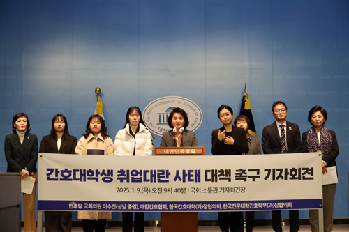 이수진 의원은 “의료대란으로 간호사 취업절벽 문제가 더욱 심각해졌고 병원들은 경영난을 이유로 간호사 채용을 줄이거나 중단했다”며 “간호사가 되기 위해 수년간 충실히 준비해온 간호대학생들이 꿈을 펼쳐 보지도 못한 채 임시 일자리를 찾아 나서거나 실업의 벼랑으로 내몰리고 있다”고 설명했다.