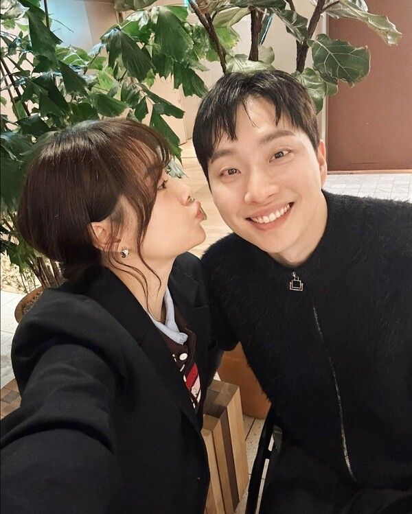 송지은은 8일 자신의 인스타그램에 “오늘의 우리”라는 짧은 글과 함께 두 장의 사진을 게재했다. 공개된 사진 속 송지은은 박위에게 뽀뽀하는 다정한 모습을 보여주고 있으며, 또 다른 사진에서는 두 사람이 손을 맞잡고 환하게 웃는 모습이 담겨 있어 보는 이들의 시선을 사로잡았다.