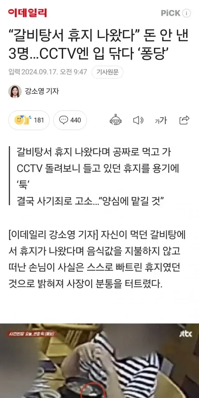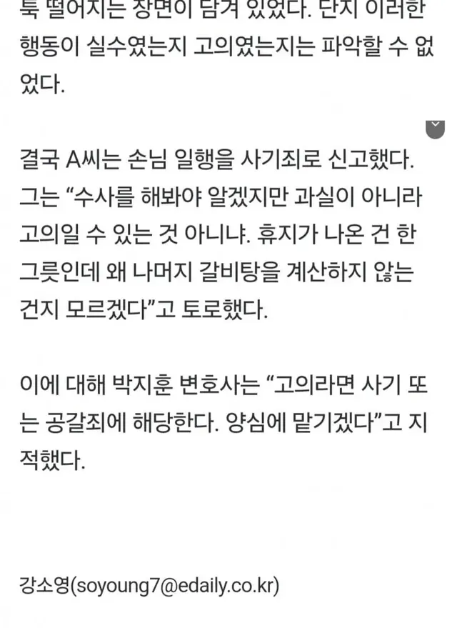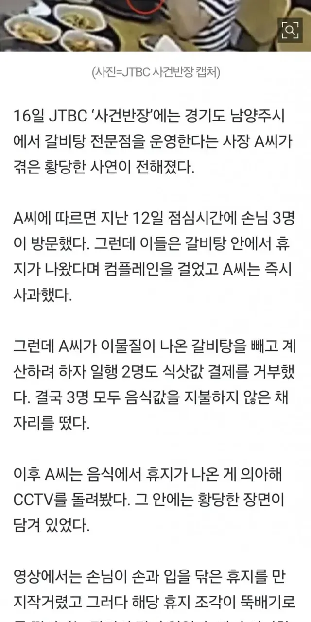 갈비탕 이물질근거로 무전취식