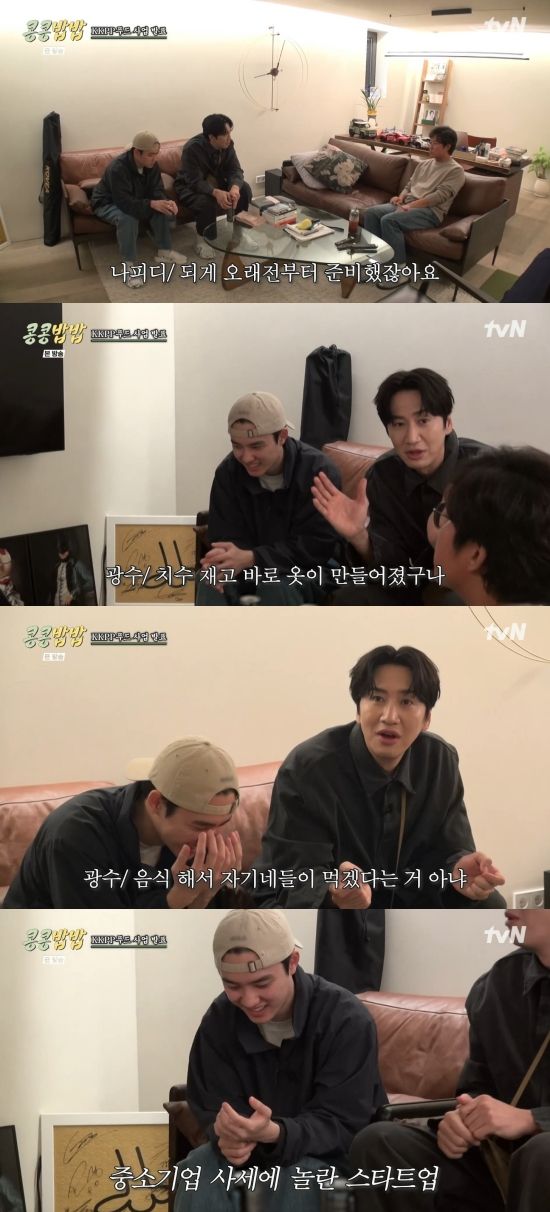 9일 방송된 tvN 새 예능 프로그램 '콩 심은 데 콩 나고 밥 먹으면 밥심 난다'(이하 '콩콩밥밥')에서는 이광수와 도경수가 에그이즈커밍에서 구내식당을 운영하게 된 장면이 전파를 탔다.