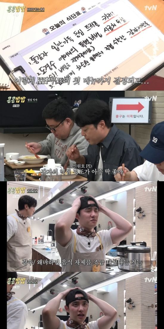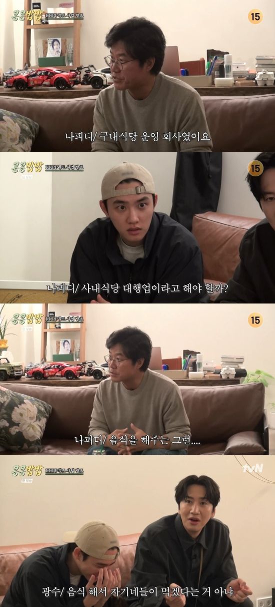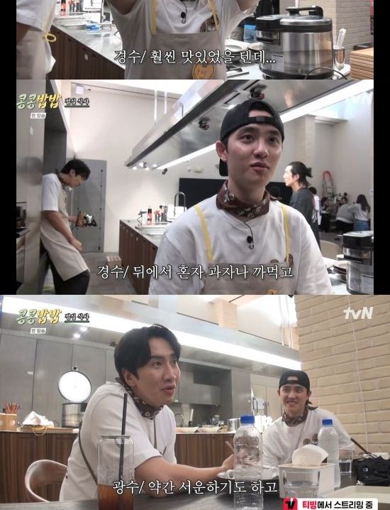 9일 방송된 tvN 새 예능 프로그램 '콩 심은 데 콩 나고 밥 먹으면 밥심 난다'(이하 '콩콩밥밥')에서는 이광수와 도경수가 구내식당을 운영하는 장면이 전파를 탔다.