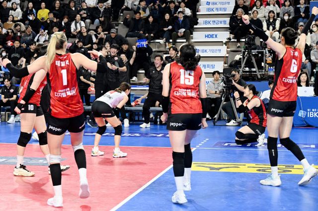 반면 페퍼저축은행에 덜미를 잡힌 4위 IBK기업은행은 11승 8패 승점 32에 머물렀다. 봄배구 진출 안정권인 3위 정관장(승점 34)과 승점 차는 여전히 2점이다.