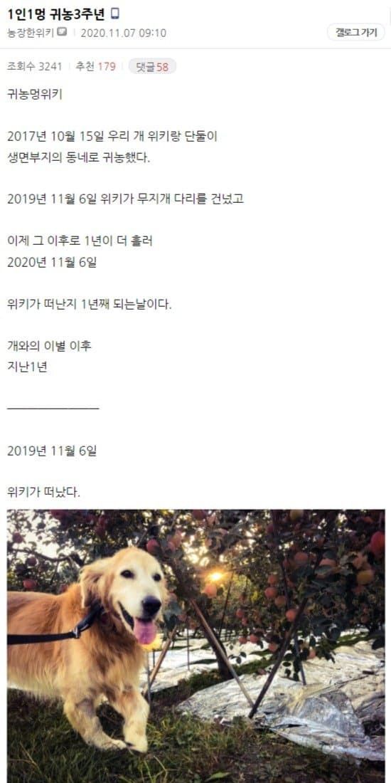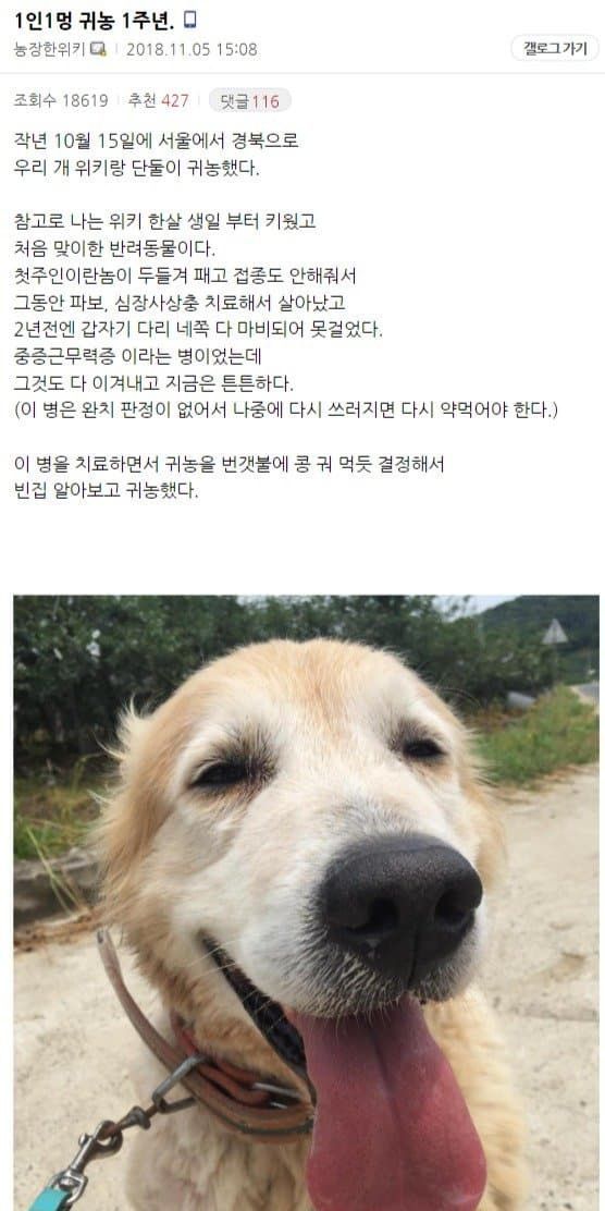 훌쩍훌쩍 개 데리고 귀농한 디시인