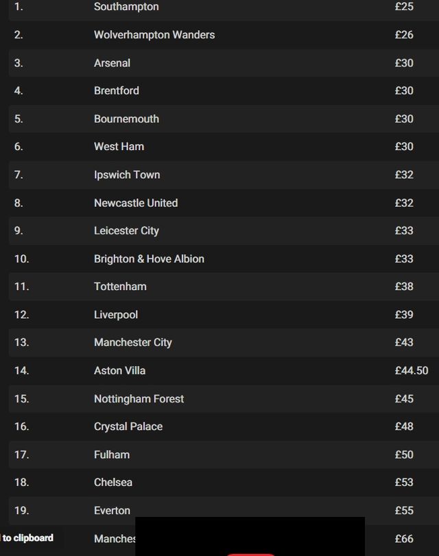 영국 매체 '기브미 스포츠'가 지난 8일(한국시간) 프리미어리그 구단들의 2024-2025시즌 경기 티켓 가격 순위를 매겼다.