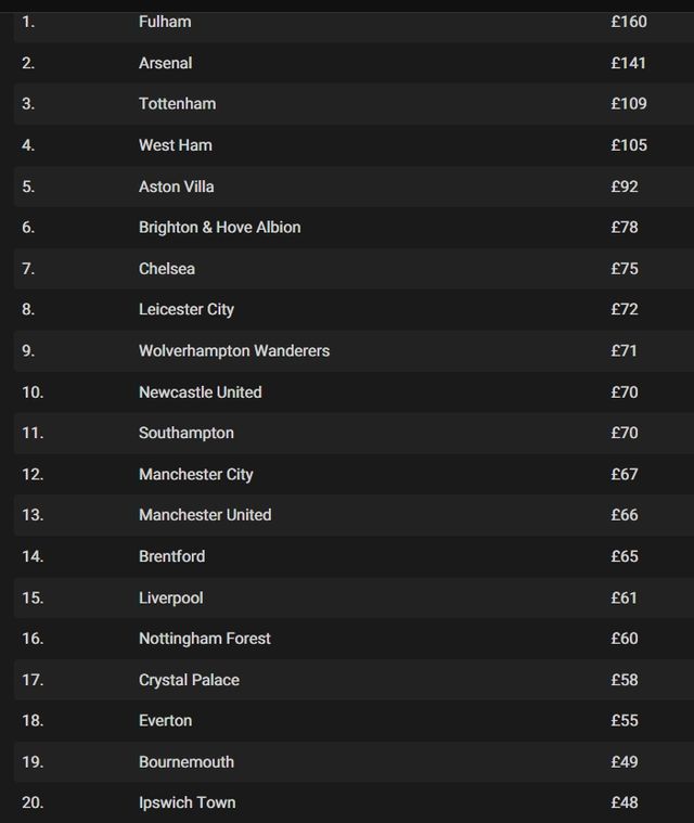 가장 비싼 경기 티켓 1위 구단은 풀럼으로 무려 160파운드(약 28만 7160원)에 달했다. 매체는 풀럼과 아스널의 특이한 점을 또 소개했다. 풀럼과 아스널은 리그에서 가장 비싼 시즌권 상위 3위 안에 든다.