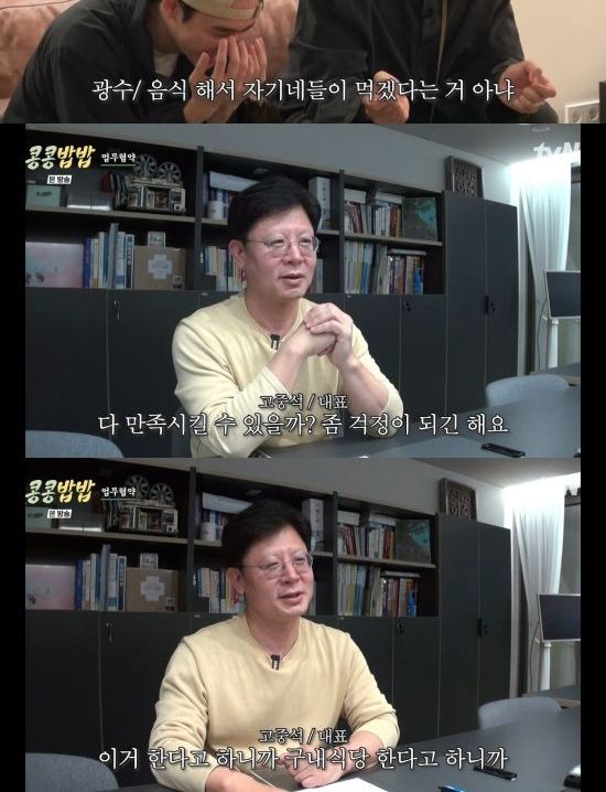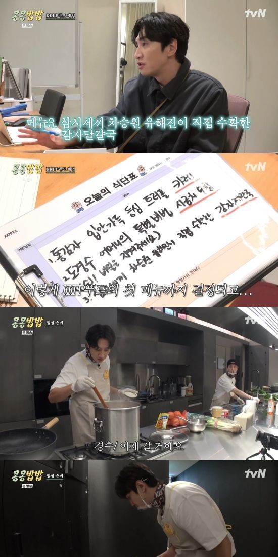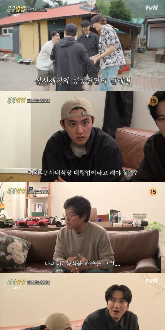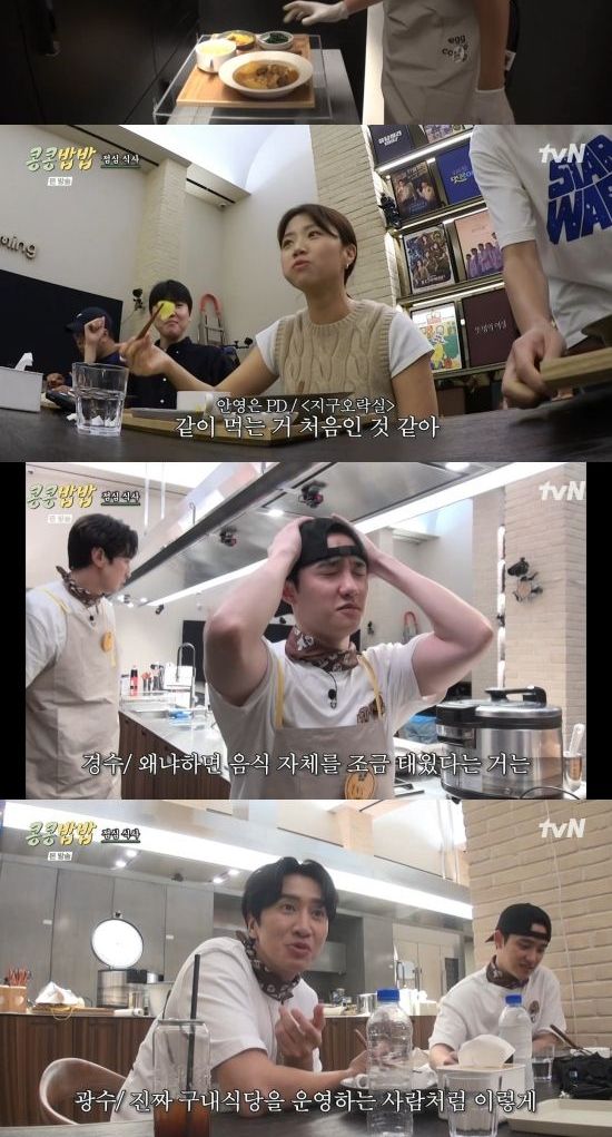 9일 방송된 tvN 새 예능 프로그램 '콩 심은 데 콩 나고 밥 먹으면 밥심 난다'(이하 '콩콩밥밥')에서는 나영석 피디가 이광수와 도경수에게 에그이즈커밍의 구내식당 운영을 부탁한 장면이 전파를 탔다.