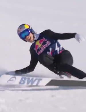 드론으로 촬영한 스키점프 세계 신기록 달성순간