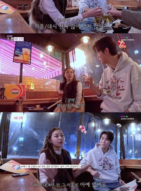 신지훈은 "그래서 지금 방송하면서 대시 진짜 많이 받지 않냐"고 물었고, 송해나는 "나 어디가서 또 얘기하는데, 나 진짜로 없다. 진짜 솔직히 모두가 아는 그 4년 전 이후로 아예 없다. 썸도 없다. 그래서 내가 진짜 심각하다는 것"이라고 밝혔다.