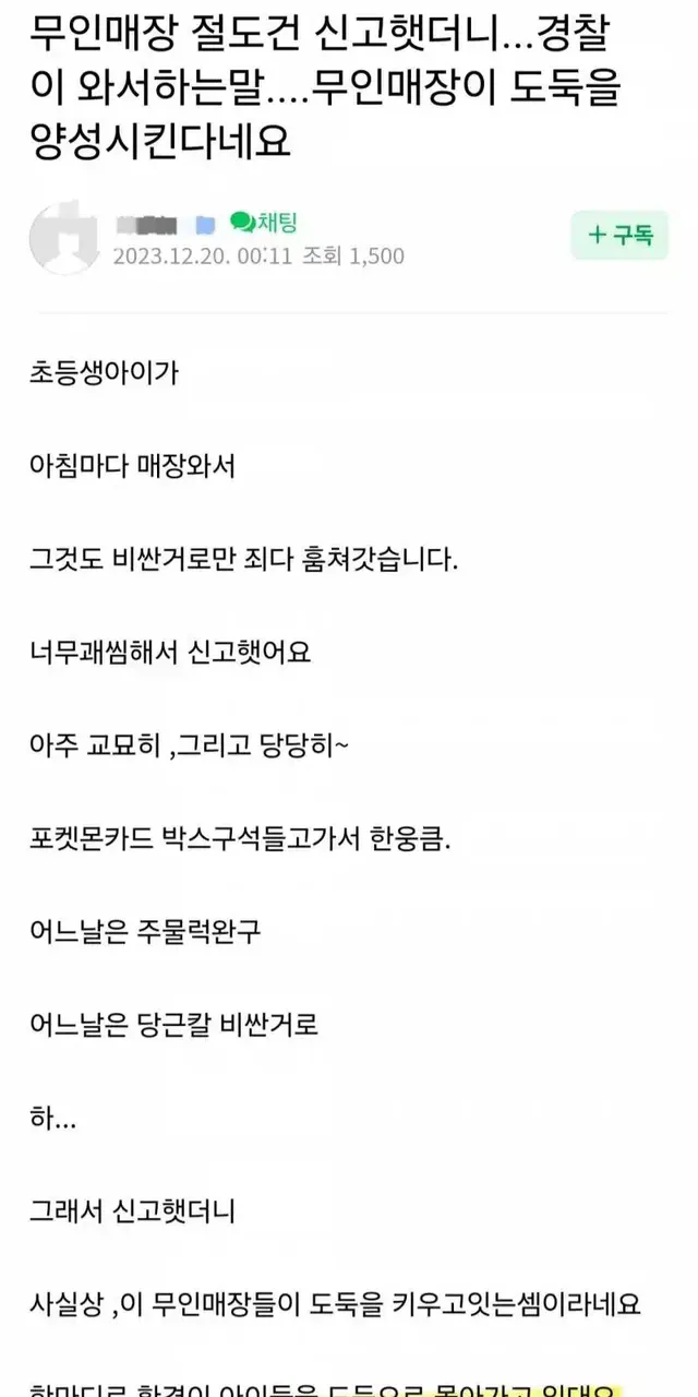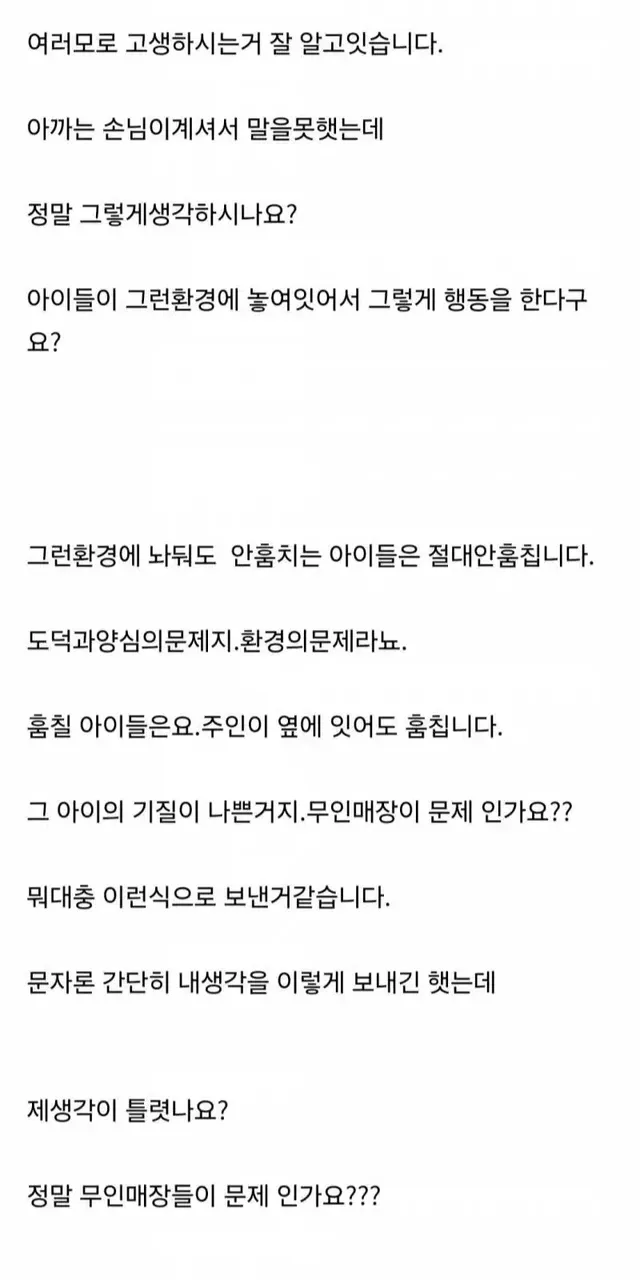 초딩들에게 털린 무인매장사장이 경찰에게 들은말