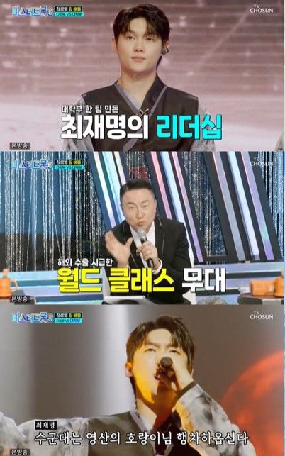 대학부는 '창귀' 무대를 선보였고, 경이로운 퍼포먼스와 파격적인 무대 연출, 소름 끼치는 가창력이 시청자들을 압도했다. 무엇보다 리더였던 최재명의 리더십이 빛났다. 이에 대해 영탁은 "이런 편곡에서 소리를 뚫고 나오기 쉽지 않은데, 재명 씨가 리드를 잘해줬다"라고 강조했다. 장윤정은 "이대로 작품으로 올려도 될 만큼 허점 하나 없는 완벽한 무대"라는 극찬을 쏟아냈다. 주영훈 역시 "세계적인 무대였다"라고 대학부의 월드클래스급 무대에 감탄했다.
