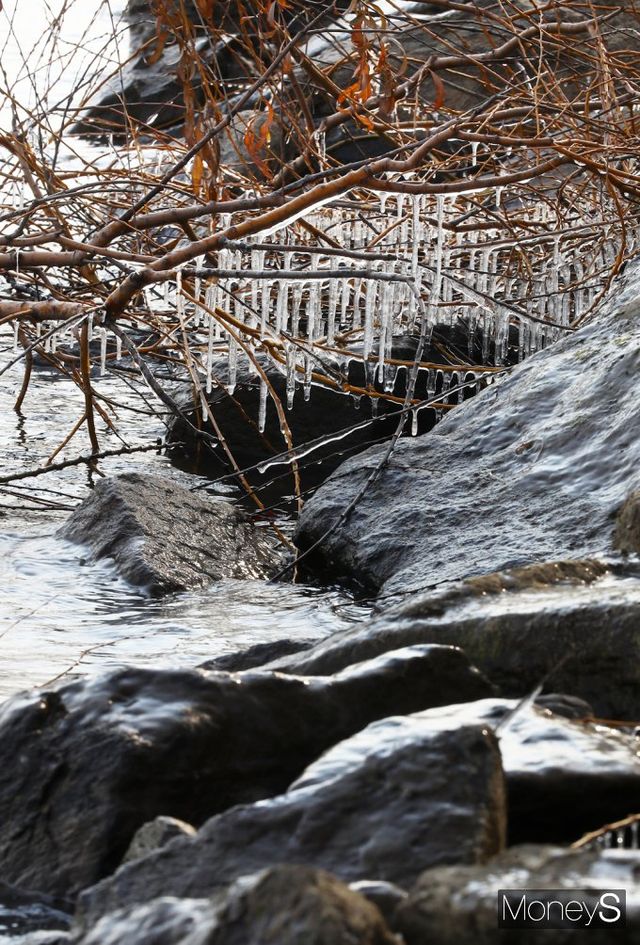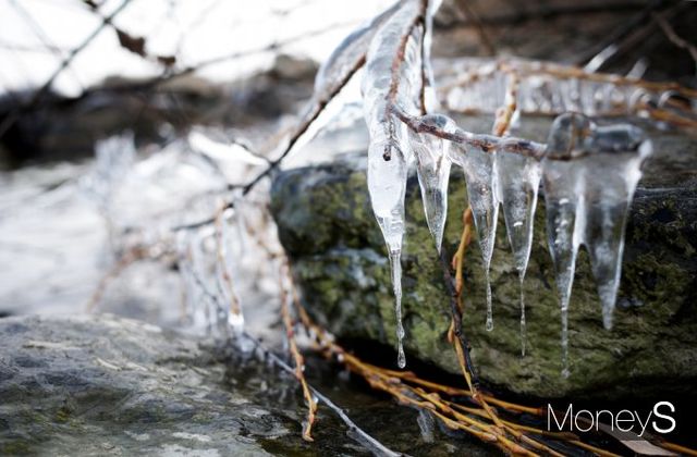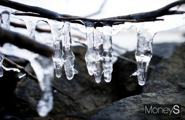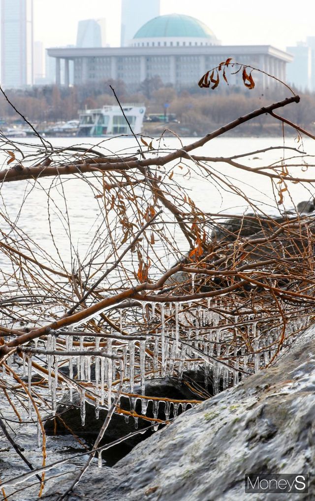 강원 아침 기온이 영하 21도까지 떨어지는 등 전국 31개 지역에 한파 특보가 발효된 가운데 10일 서울 영등포구 여의도 한강변 일대는 고드림이 맺혀 있다.