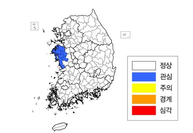 다만, ‘보령댐’ 공급지역인 충남 서부 8개 시·군은 약한 가뭄(관심) 단계(2025년 1월 2일~)로, 댐 용수공급 조정기준에 따라 보령댐 도수로를 가동하는 등 용수공급에 지장이 없도록 관리하고 있다.