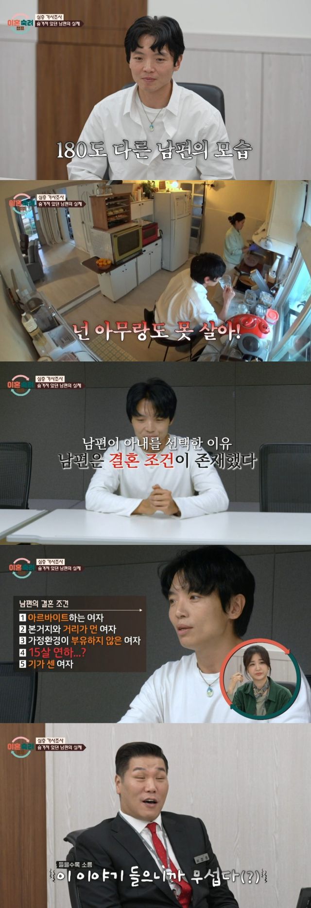 알고 보니 남편에게는 결혼 조건이 존재했다. 아르바이트를 하고, 본거지와 거리가 멀고, 가정환경이 부유하지 않고, 15살 연하, 기가 센 여자를 찾았다고.