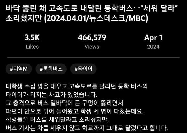바닥 뚫린 채 고속도로 내달린 통학버스‥”세워 달라” 소리쳤지만